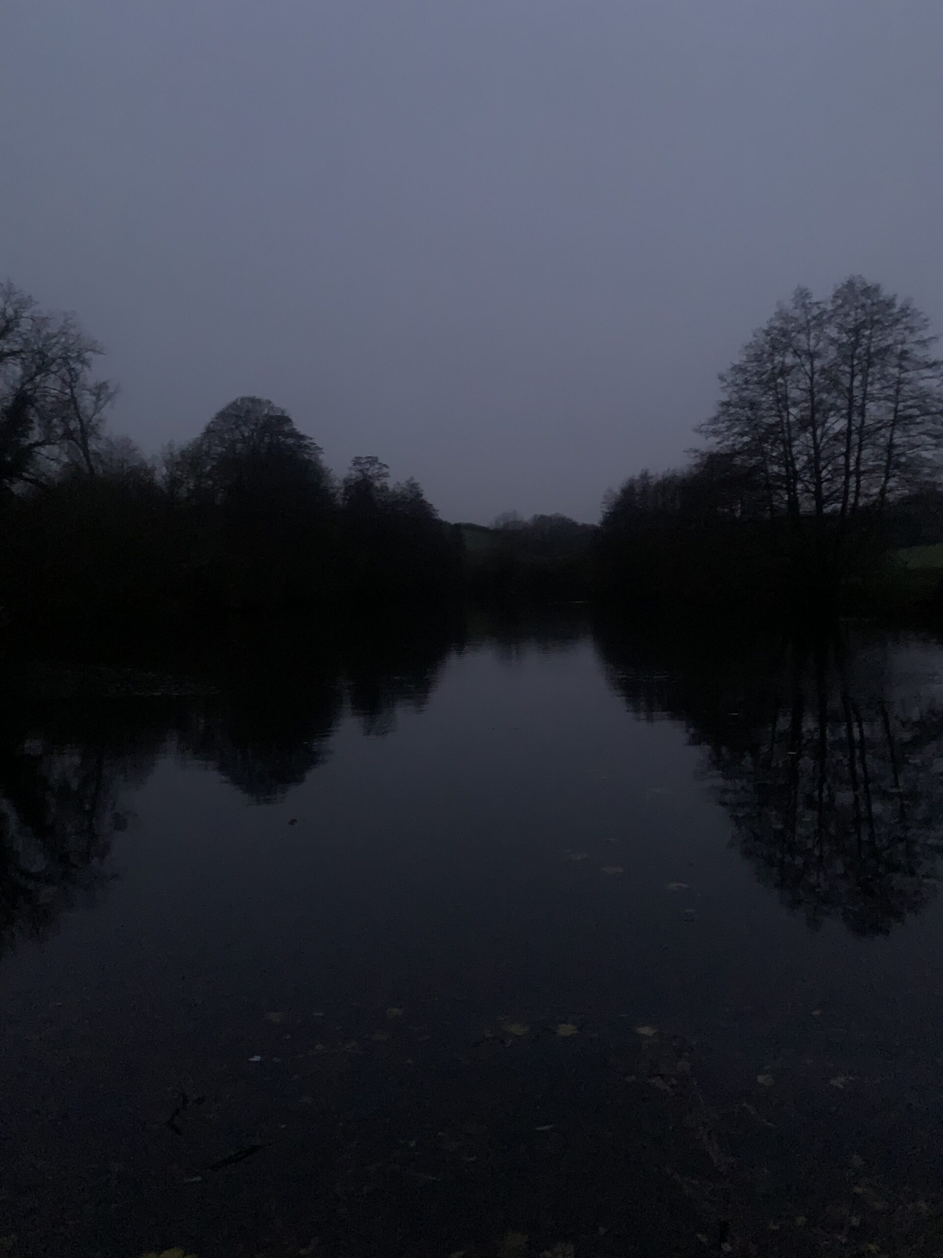 Reflecting the pale winter twilight.